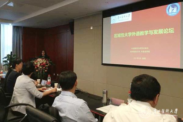 贵州省大学外语教学研究会会长、贵州财经大学外国语学院院长王健芳教授致辞。她代表贵州省大学外语教学研究会对参会嘉宾表示欢迎并就贵州的大学外语教学发展作了简要介绍,对本次论坛的举行给予了高度评价。