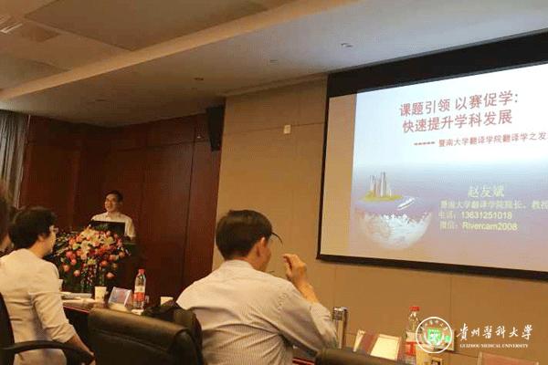 本次论坛的主讲嘉宾分别是暨南大学翻译学院院长赵友斌教授和广东白云学院外国语学院院长何高大教授。赵友斌教授用幽默、风趣的语言从3个方面向我们诠释了暨南大学翻译专业成为“五星级专业”的成长之路,指出课题引领、以赛促学、以赛促教、以赛促效的理念不仅促进教学与实践的融合,提高教和学双向的积极性和主动性,也提升专业知名度和办学成效;此外,“人才引进,名家助力”也是暨南大学明星专业锻造成功的关键因素!何高大教授围绕即将到来的 “全媒体学习时代”探讨了未来的学习范式,分析了未来人才范式,并提出一个我们大家都必须思考的问题:what type of teachers will you be? 会后与会专家、领导和老师进行了交流并合影留念。