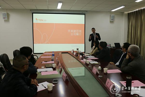 11月1日,台湾天来诺亚克股份有限公司执行长沈家平、台湾天来创新生活产业股份有限公司总经理王人星、贵州腾迈智医大数据科技发展有限公司杨华一行莅临我校大健康学院交流访问。副校长罗鹏出席交流会,大健康学院党政领导班子及教师代表参加。
