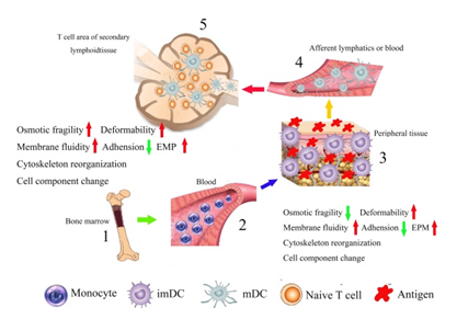 团队从DCs的临床应用中存在的问题为出发点,从肿瘤免疫学、生物物理学和力学生物学等角度研究化学因素(细胞因子和自由基等)和物理因素(生理剪切力)对DCs运动能力和免疫学功能的影响及其分子机制,结合数学模型以进一步探索DCs的运动能力和免疫学功能之间的关系,为基于DCs的抗肿瘤免疫治疗的临床应用提供理论依据和技术支持,并有望开发出新的肿瘤免疫治疗方法,体现了多学科深度交叉和转化医学的特点。曾柱教授在国际上率先提出了“Immuno-Mechanobiology(免疫力学生物学)”的概念,获得了国内外同行的认可。