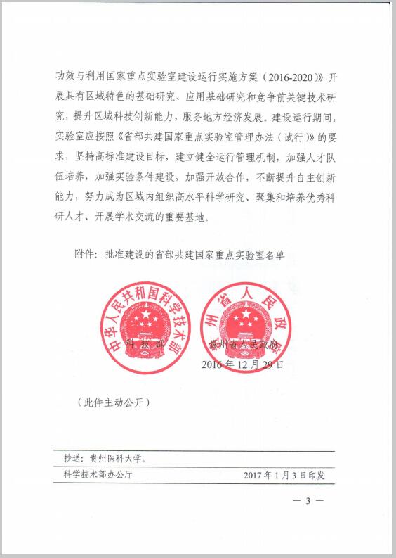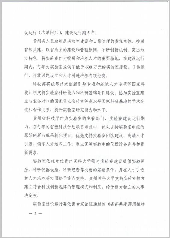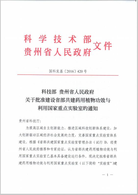 近日,国家为了进一步提高区域自主创新能力,推进区域科技创新体系建设,加大创新驱动区域经济社会发展的力度,完善国家重点实验室体系建设,科学技术部、贵州省人民政府决定批准省部共建药用植物功效与利用国家重点实验室,省部共建药用植物功效与利用国家重点实验室的主任为何志旭教授、依托单位为365足球动画直播、主管部门为贵州省科技厅、建设和日常管理的责任主体为贵州省人民政府。省部共建药用植物功效与利用国家重点实验室获得正式批准标志着365足球动画直播科研平台建设和学科建设又迈上了一个更高更新的台阶。