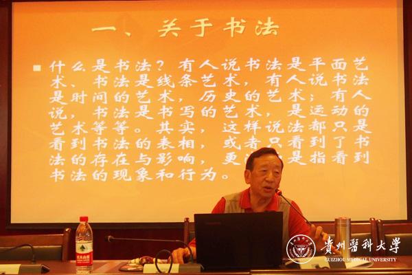 10月15日下午,我校人文论坛第二十五期暨道德讲堂第二十一讲——《书法杂说》专题讲座在南校区道德讲堂举行。本次论坛邀请到中国硬笔书法协会会员、贵州经济文化促进会书画委员会委员、贵州老年书画研究会会员、贵州省军区诗书画研究会会员、贵州省老科协书画研究会副会长兼秘书长曾宪琪主讲。各院(系)学生代表400余人参加了本次活动。