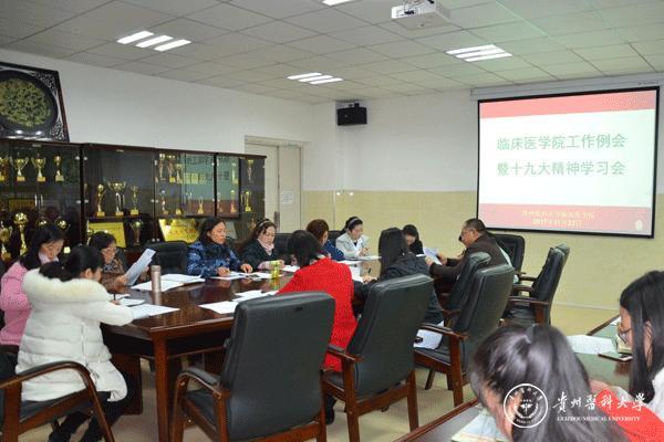 为深入学习贯彻党的十九大精神, 11月22日,临床医学院全体教师在二楼会议室召开了十九大精神学习会。会议由临床医学院党委副书记杨婕主持。