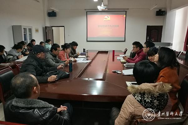 11月23日,生物与工程学院组织全体职工党员、科级以上干部在厚德楼五楼会议室集中学习十九大精神。会议由党委书记封韬主持。