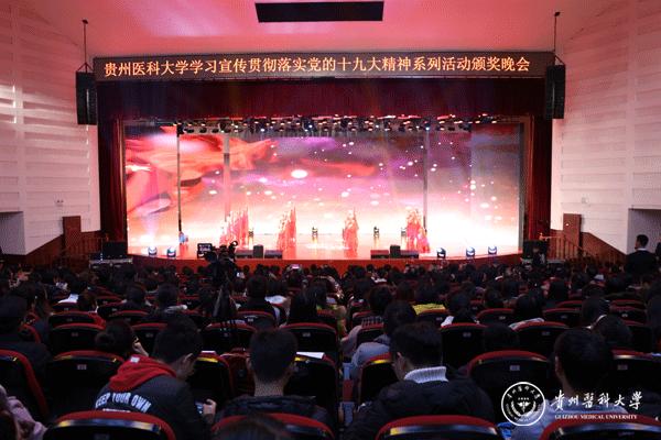 12月8日,学校学习宣传贯彻落实党的十九大精神系列活动颁奖晚会在南校区大礼堂举行。党委书记林昌虎,党委副书记吕保平,党委副书记、附属医院党委书记刘兴德,副校长罗俊,党委副书记战勇,副校长黄亚励、冉江舟,天然产物化学重点实验室副主任杨小生、傅舒安以及省教育厅社政处副处长(主持工作)赵祥出席,学校副科级以上干部(含教研室负责人),学校(含天然产物化学重点实验室)各基层党支部书记,天然产物化学重点实验室、附属医院、第二、三附属医院副处级以上干部,附属肿瘤医院、乌当医院、白云医院、遵义医院医护人员代表以及学校各二级学院教师与学生代表1500余人现场观看。