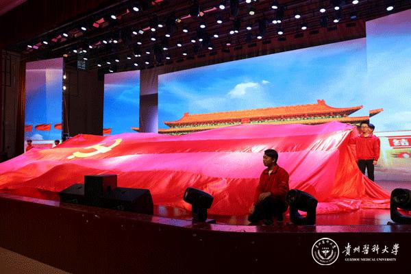 晚会以舞蹈《追寻》拉开帷幕,诗朗诵《我心飞翔,献给您的颂歌》、独唱《天耀中华》、舞蹈《欢歌共舞》等展现了青年一代“贵医人”团结向上、拼搏奋进的精神风貌,合唱《心里装着谁》、《没有共产党就没有新中国》演绎了老一辈“贵医人”热爱生活、忠诚选择的可贵品质。此外,在《微宣讲》活动环节,党的十九大代表、我校优秀校友赵晶晶用切身体会生动讲述了一名基层党员民警代表执着信仰、坚守岗位、无私奉献的心路历程;在访谈活动环节,三位优秀的教师代表——秉承让科研服务临床理念的外科医生孙发老师、药学科研工作者汤磊老师、抗癌一线的医务工作者苏胜发老师分别讲述了各自的亲身经历,用朴实的语言、动人的故事、浓烈的激情向在座的老师和同学们传递了献身医药卫生管理事业、执着科研创新、勇攀科学高峰的医学正能量。
