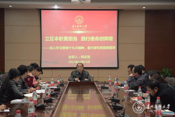 12月15日,校长何志旭召集所分管联系的校长办公室、科学技术处、组织工程与干细胞实验中心、法医学院(法医司法鉴定中心)全体人员在北校区行政楼六楼连廊会议室集体学习党的十九大精神。