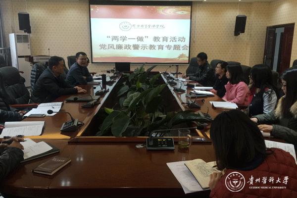 12月20日上午11点,医药卫生管理学院全体教职工党员在善思楼六楼会议室开展“两学一做”专题学习活动,集中收看党风廉政教育警示片《镜鉴——衡阳、南充违反换届纪律案件警示录》。