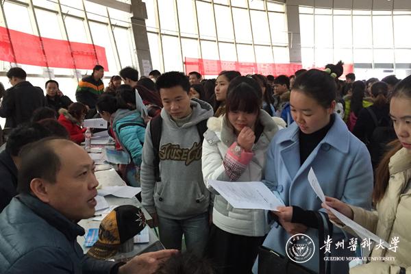 11月,按照用人单位要求开展专场招聘会,参会省外单位有浙江省金华市卫生系统、浙江省临海市卫生系统、深圳市妇幼保健院,省内单位有松桃县人民医院、思南县卫生系统、关岭县人民医院等26家单位。12月2日—18日的校园招聘会有省外单位上海市浦东新区卫生系统、广东省河源市人民医院、宁波大榭开发区医院,省内单位有印江县卫生系统、三都县卫生系统、福泉市卫生系统、铜仁市万山区卫生系统、都匀市人民医院、六盘水市第二人民医院、安顺市平坝区中医院等42家用人单位参加。此次冬季系列招聘会为2016届毕业生提供临床医学、口腔医学、医学影像学、麻醉学、护理学、医学检验、药学等专业的就业岗位共1281个。招聘会现场毕业生与用人单位积极沟通、互相了解,气氛热烈。部分毕业生当天就与用人单位达成了就业协议。