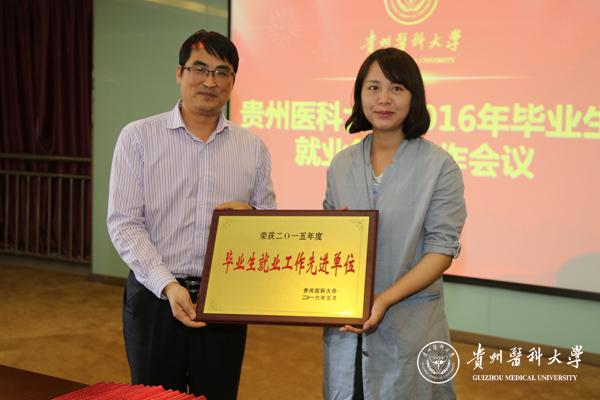 张红霞传达了《关于做好2016年贵州省普通高等学校毕业生就业创业工作的通知》文件精神,全面回顾和总结学校2015年的就业工作,并对2016年毕业生就业工作作了全面安排。会上,对获奖单位和个人进行了表彰,医学影像学院等7个二级学院评为“365足球动画直播2014年毕业生就业工作先进集体”,杨婕等16位老师评为“365足球动画直播2015年毕业生就业工作优秀个人”,2015年就业工作先进单位代表口腔医学院和医药卫生管理学院相关负责人作了交流发言,分享了工作经验和创新思路。